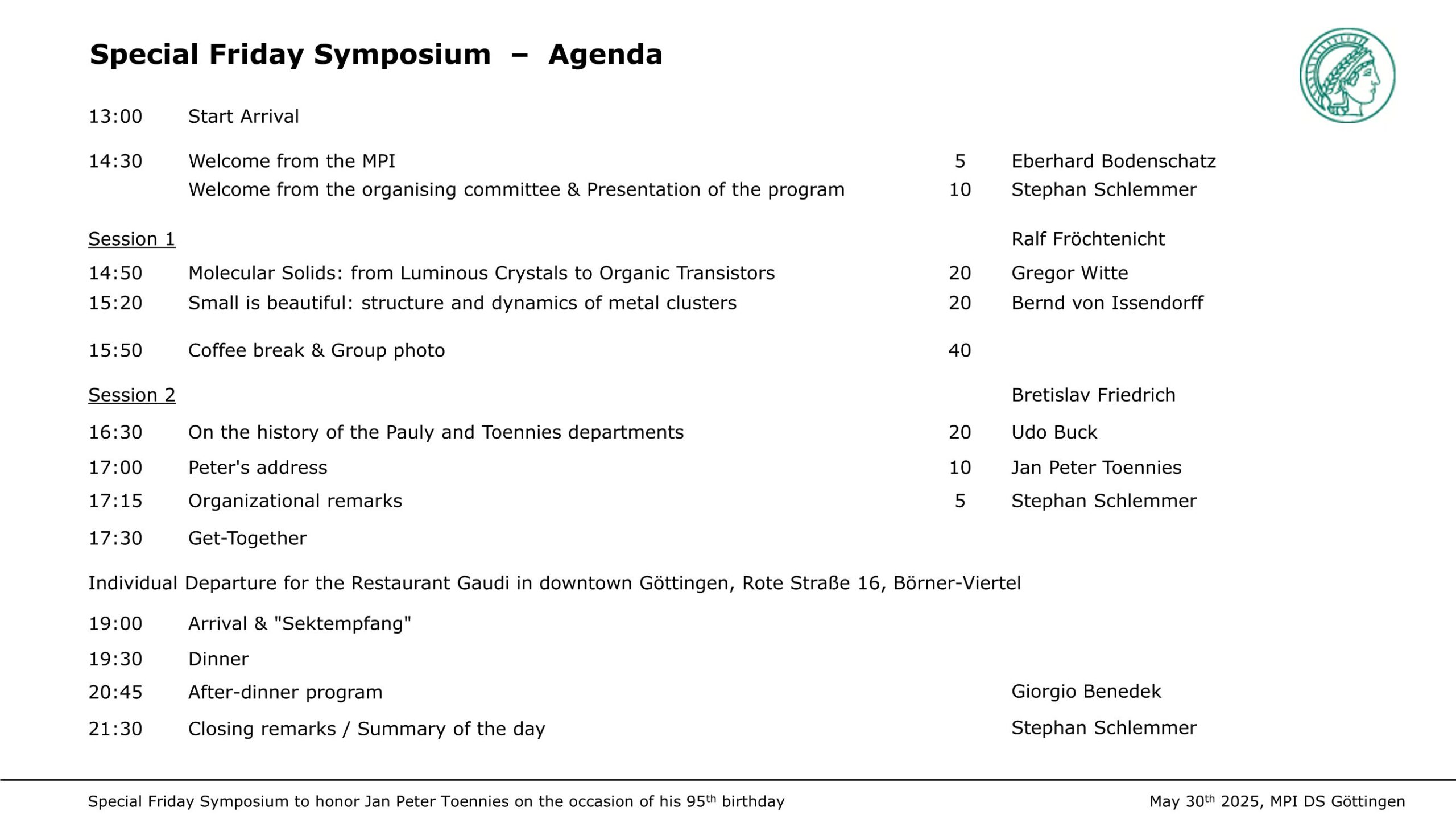 Agenda, Dinner, Location MPI DS for Printout